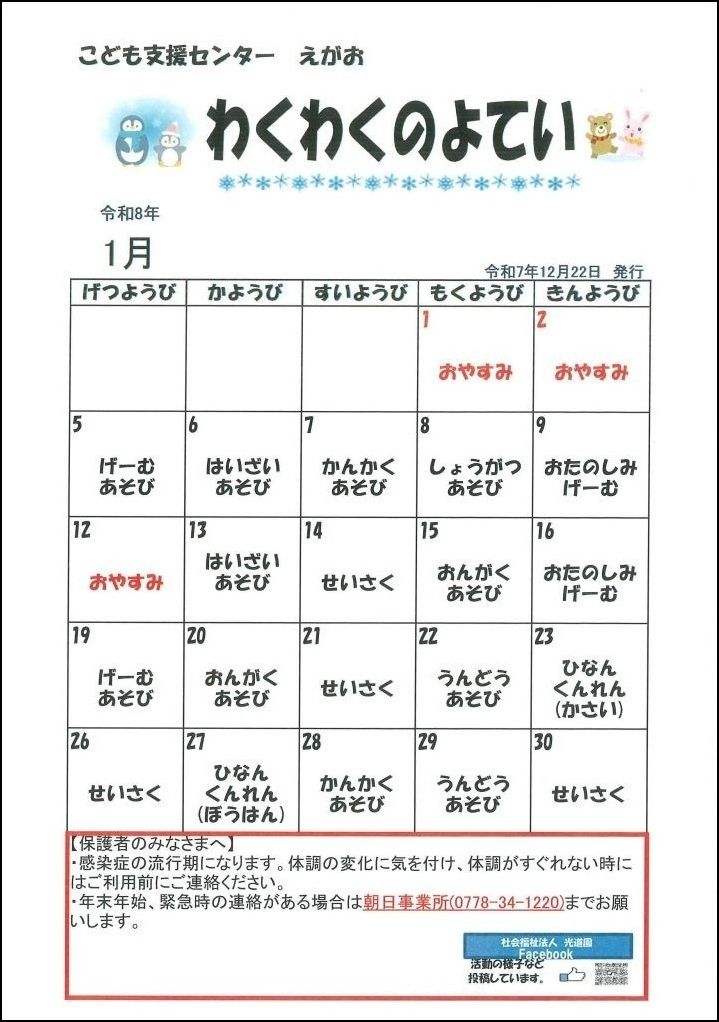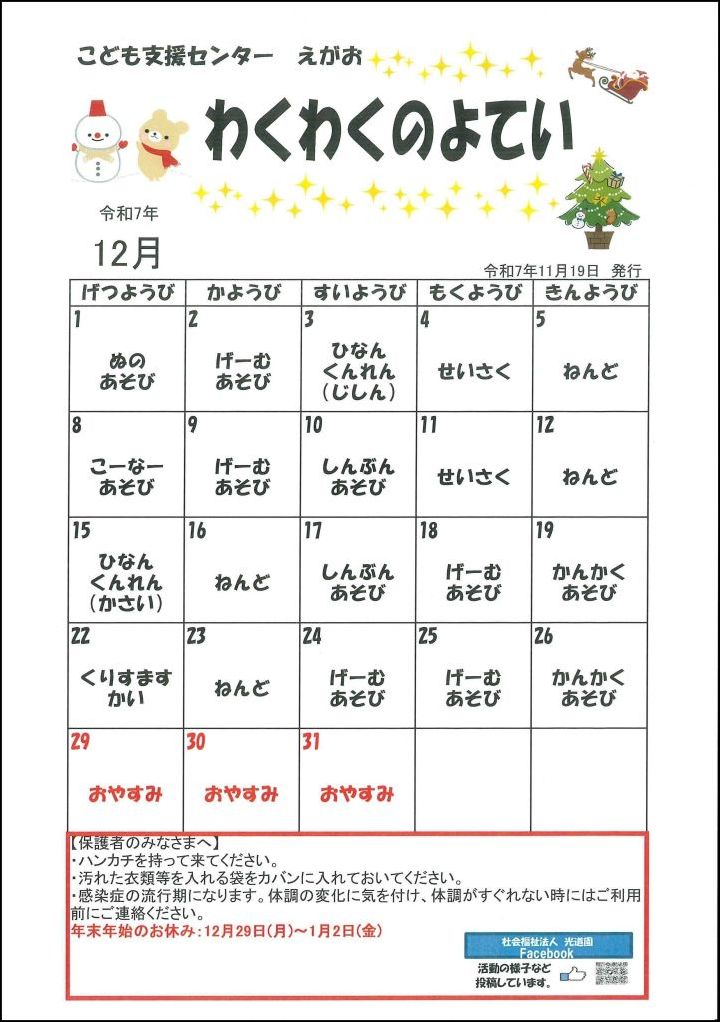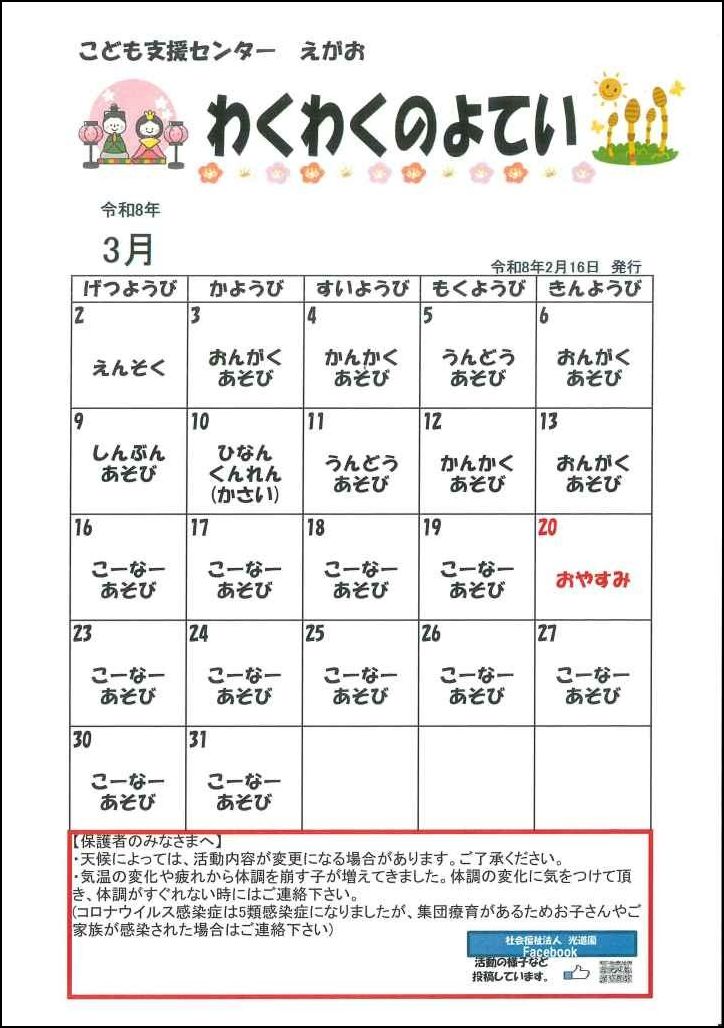 わくわく予定表 | 社会福祉法人 光道園